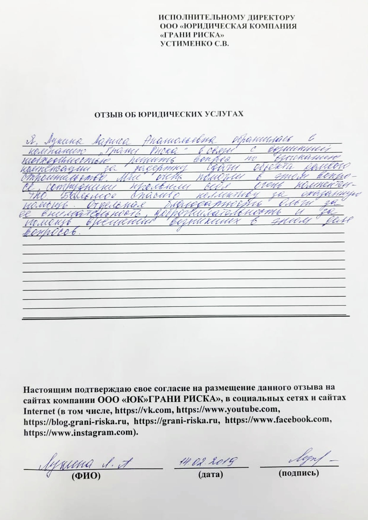 У Вас отсутствует риск, что Исполнитель (Мы) передадим Ваше дело другим юристам за вознаграждение.